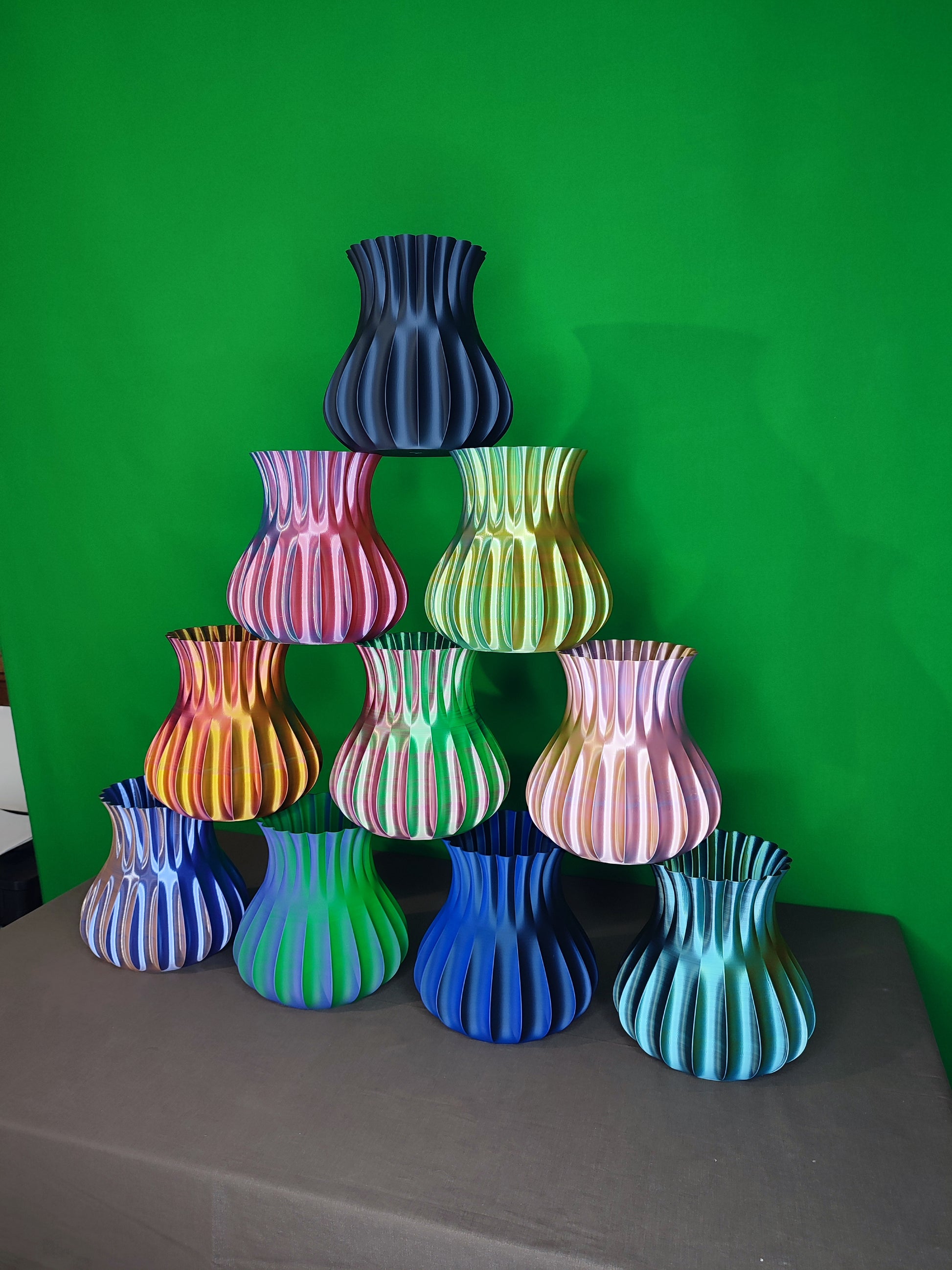Le foto della stessa variante sono state scattate ruotando il vaso di 60°–90°, per mostrare questo effetto unico che risulta strabiliante dal vivo.